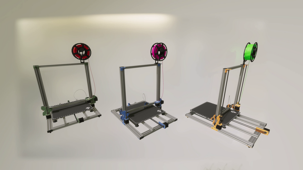Build and animate modular machines made out of aluminium extrusions like 3D printers, CNC routers or C02 Laser cutter or use the prebuilt ones.
